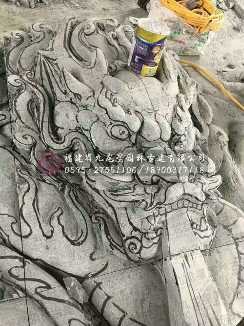 九龍星園林古建石雕九龍壁現(xiàn)場(chǎng)加工圖