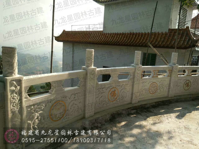 傳統(tǒng)花紋浮雕漢白玉欄桿實(shí)景展示