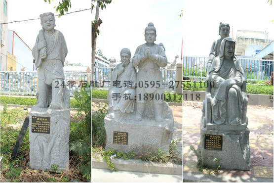 《二十四孝》的編者是元代福建延平府尤溪縣的郭居敬。他曾選輯虞舜以下二十四位孝子的感人故事,為每個故事配上一首詩,用來做兒童的啟蒙讀物,《二十四孝》的名稱便是由此而來?!抖男ⅰ饭适戮幎ǔ蓵?古人把孝道列為社會教化的一項重要內(nèi)容,鼓勵人們“老吾老以及人之老,幼吾幼以及人之幼”,已經(jīng)在我國流傳數(shù)百年,幾乎達(dá)到了家喻戶曉的程度,對國人的倫理道德產(chǎn)生了不可低估的影響。九龍星園林古建加工的二十四孝石雕像栩栩如生,將中國古代的孝賢及其事跡呈現(xiàn)出來,就是為了讓孝道文化這一傳統(tǒng)文化在新時代得以發(fā)揚(yáng)光大,進(jìn)一步弘揚(yáng)和傳承中華民族尊老、敬老、愛
