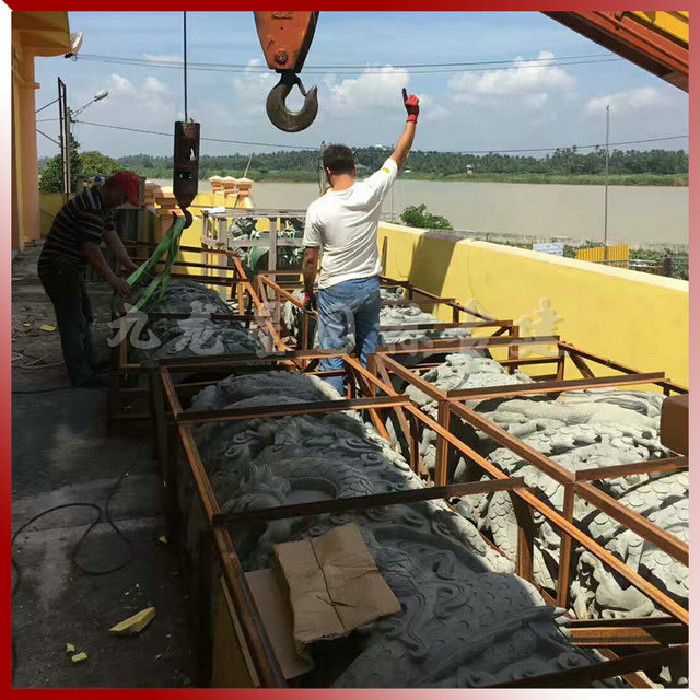 九龍星園林古建位于福建惠安,具有很強(qiáng)的材料選取優(yōu)勢(shì),通過專業(yè)且標(biāo)準(zhǔn)化的采購渠道,甄選出本地優(yōu)質(zhì)的礦料,加工的羅源青青石龍柱,精雕細(xì)琢,龍柱用于寺廟大殿美化,贏得客戶好評(píng)。