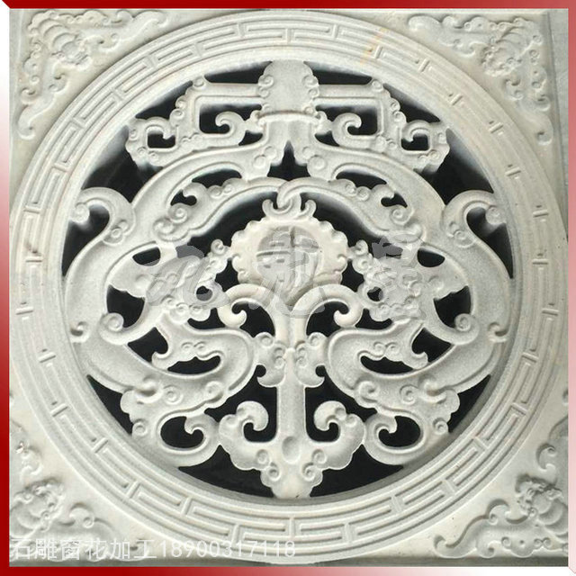 石窗,又稱石花窗,石漏窗。一個“花”字,足可以讓人對它的藝術性浮想聯(lián)翩,又足以讓人對它通透采光的實用性窺見一斑。石窗以長方形和方形最多,還有圓形、拱形等。長方形的石窗一般以直式為多,橫式次之。石雕花窗一直以來廣泛用在園林古建、廟宇建筑中,屬于傳統(tǒng)建筑構件類。