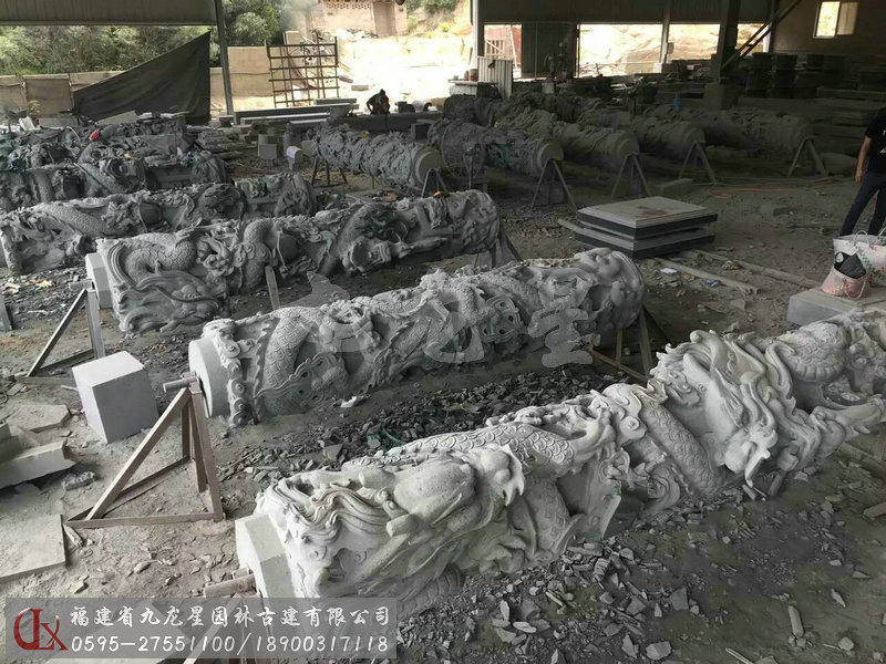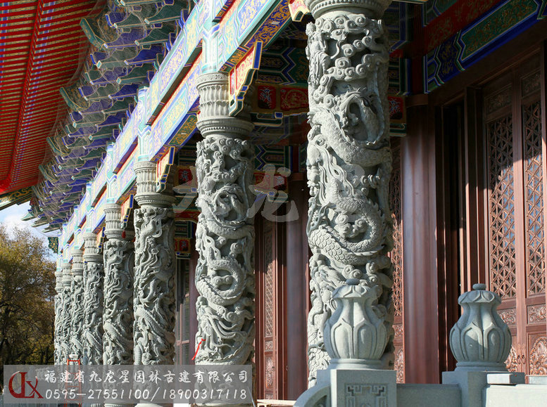 九龍星園林古建加工的寺廟石雕龍柱有單龍柱、雙龍柱、滾龍柱、盤龍柱、蟠龍柱、華表柱、龍鳳柱、八仙龍柱、青石龍柱等多種造型雕刻。我們通過專業(yè)且標(biāo)準(zhǔn)化的采購渠道,甄選優(yōu)質(zhì)的礦料,加工的寺廟石雕龍柱,大批量應(yīng)用于寺廟建筑裝飾美化,贏得客戶好評。