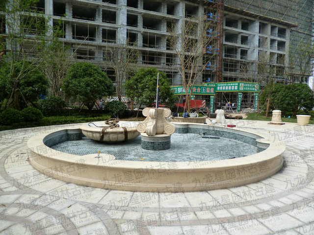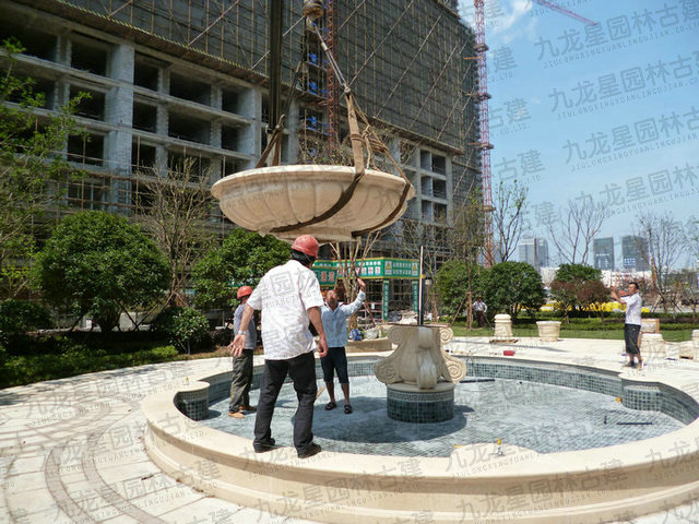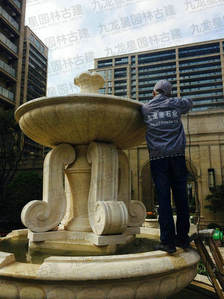 三層大理石水缽石材建筑配套加工安裝