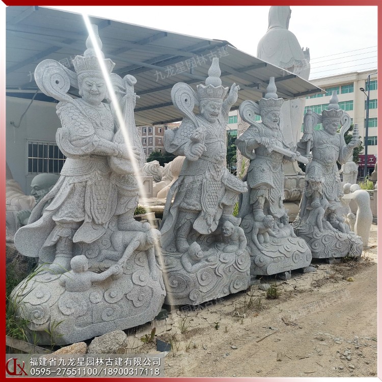 惠安石雕四大天天王圖片 寺廟天王護(hù)法神將 九龍星雕刻