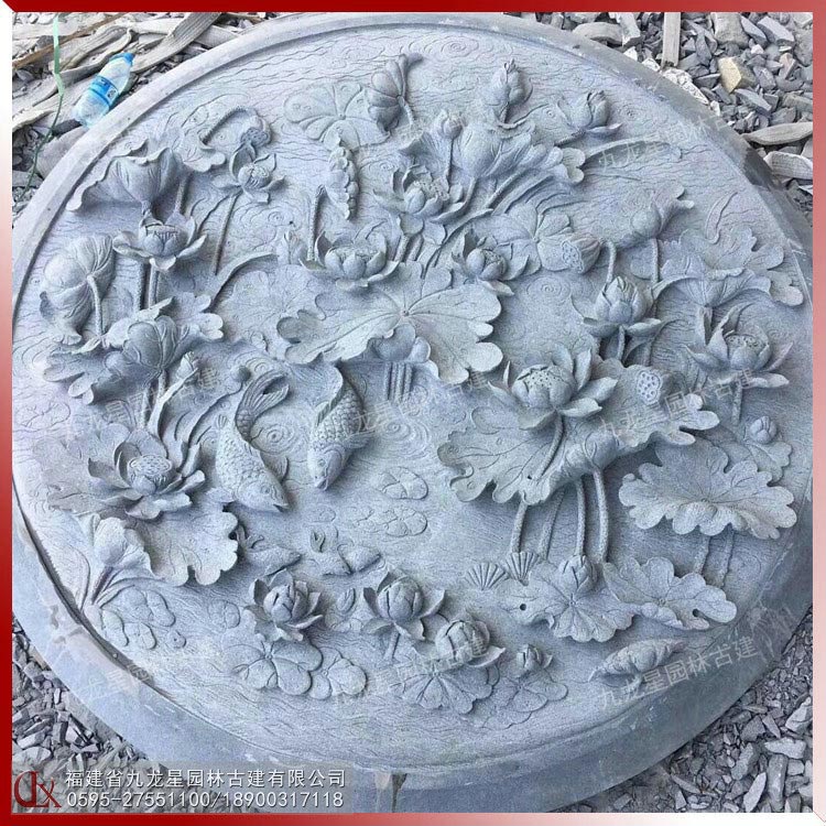 魚(yú)戲蓮葉 石雕蓮花浮雕圖片 荷花魚(yú)浮雕壁畫(huà)
