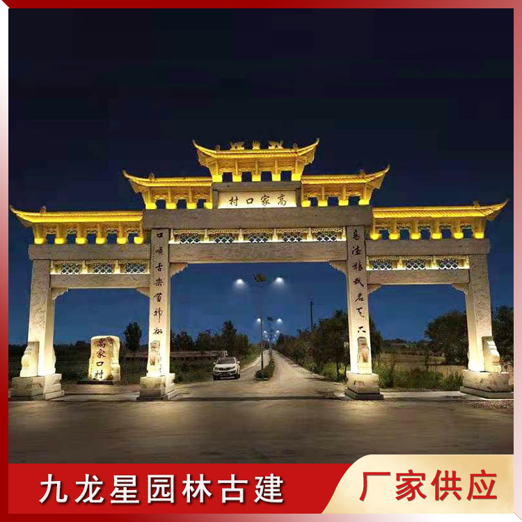 現(xiàn)代村莊牌坊建設 村口石牌坊圖片 廠家石雕定制 九龍星