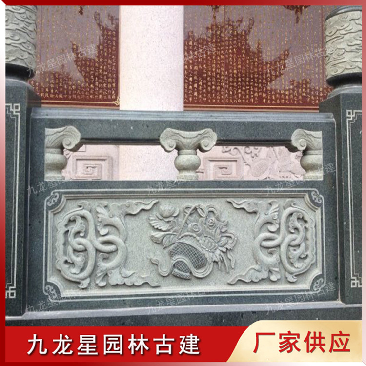 暗八仙紋飾石雕浮雕欄桿圖片 寺廟石欄桿護(hù)欄定制 九龍星